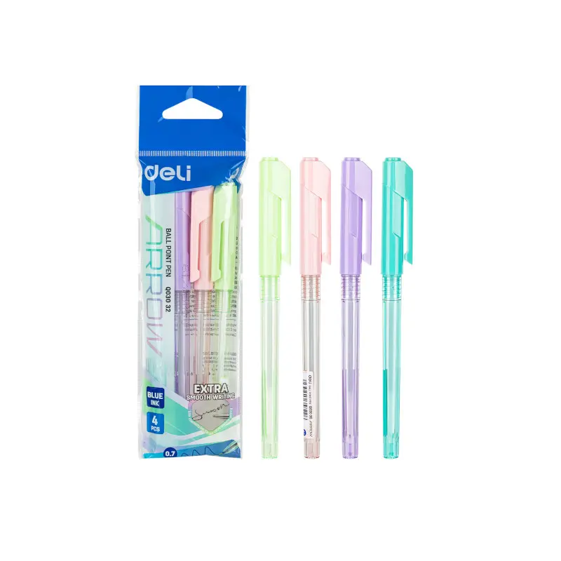 Boligrafo Deli Azul Paquete 4 0.7Mm Cuerpo Colores Pastel