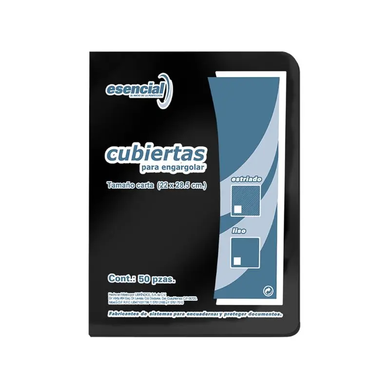 Cubierta Para Encuadernar Tama?o Carta Paquete50 Liso Esencial 14 Puntos Negro Perfex